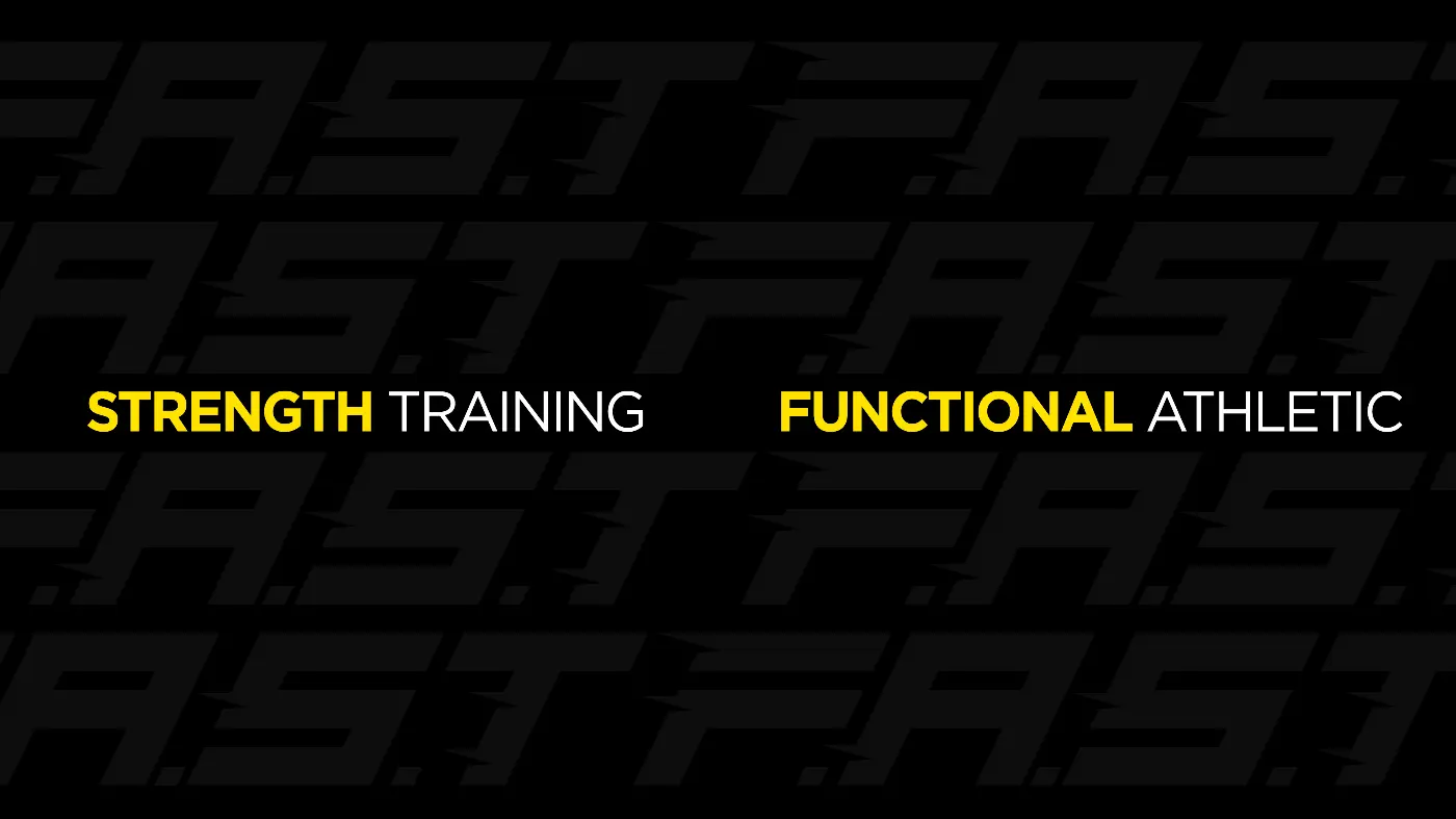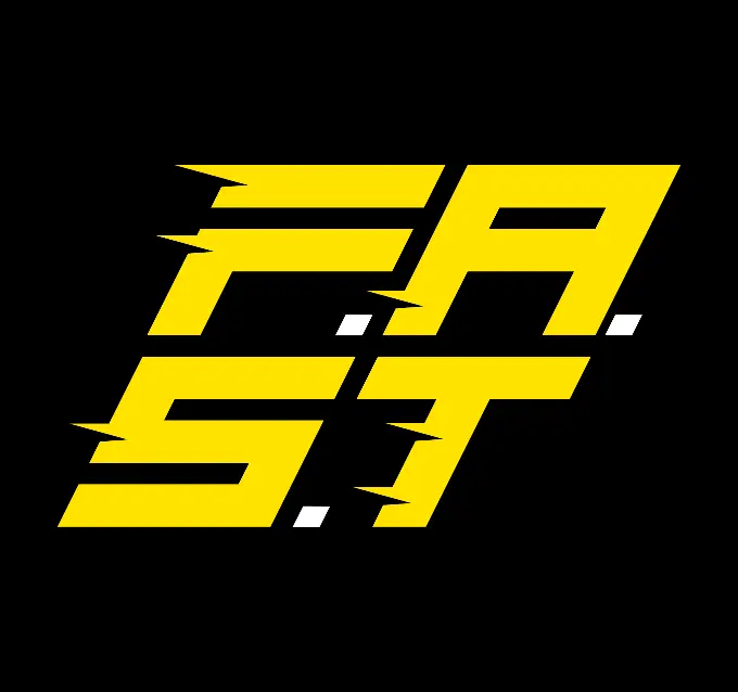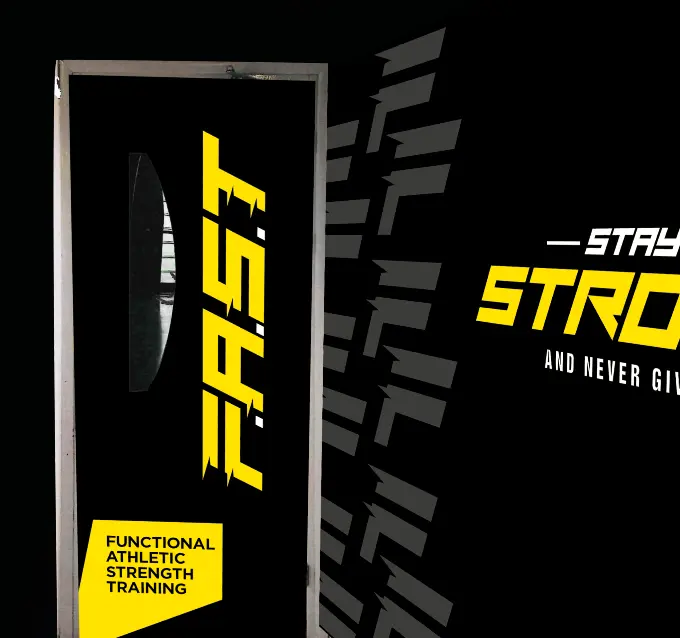 The logo is a bold FAST lettermark, constructed with sharp lines that suggest motion and acceleration. Linear details cut through the letterforms to evoke speed, agility and forward movement, reflecting the dynamic nature of functional athletic training. The simplicity of the mark ensures clarity at all scales, from large wall applications to T-shirt branding.