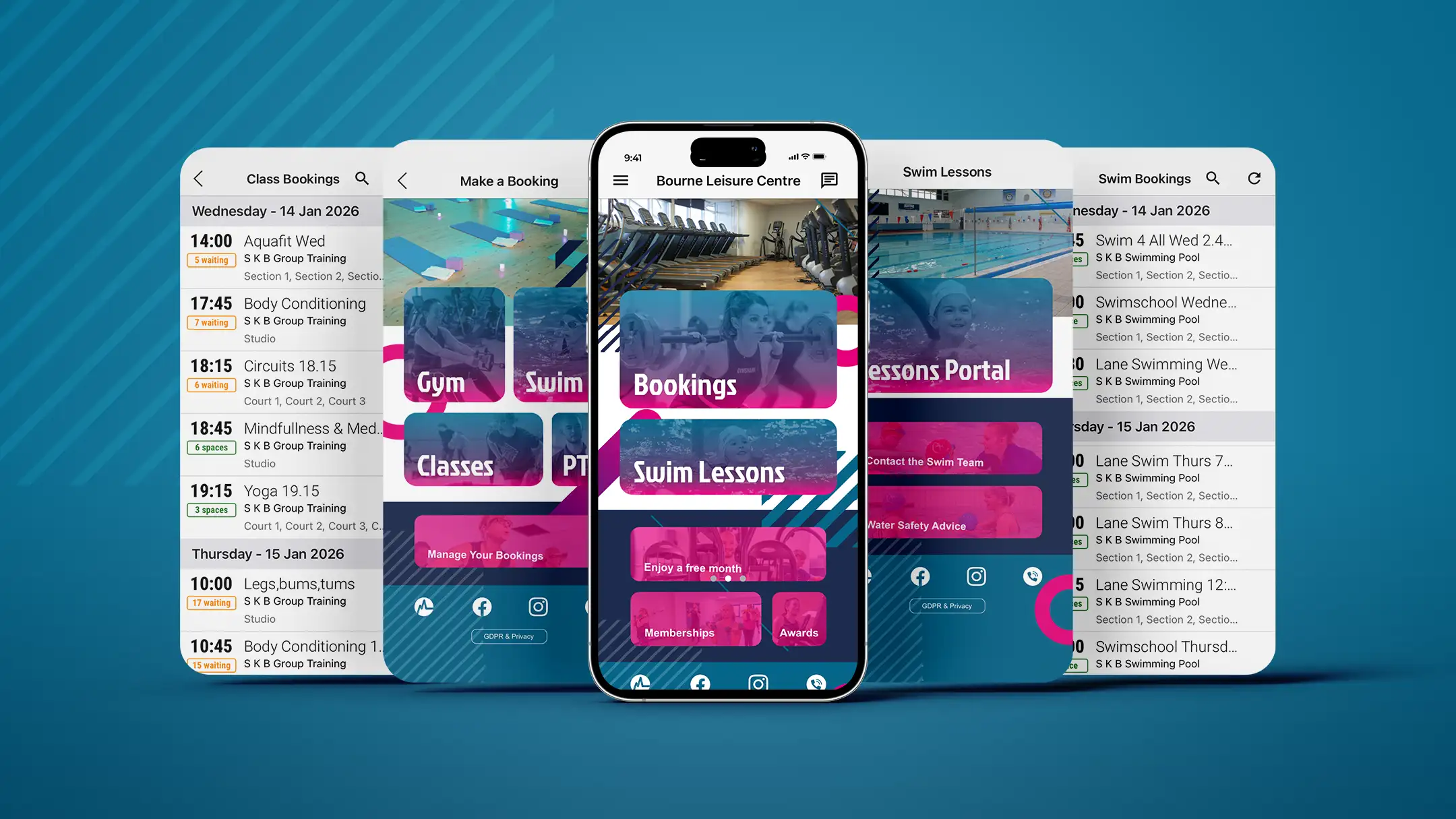- Primary actions – Booking activities, checking timetables, and managing bookings.