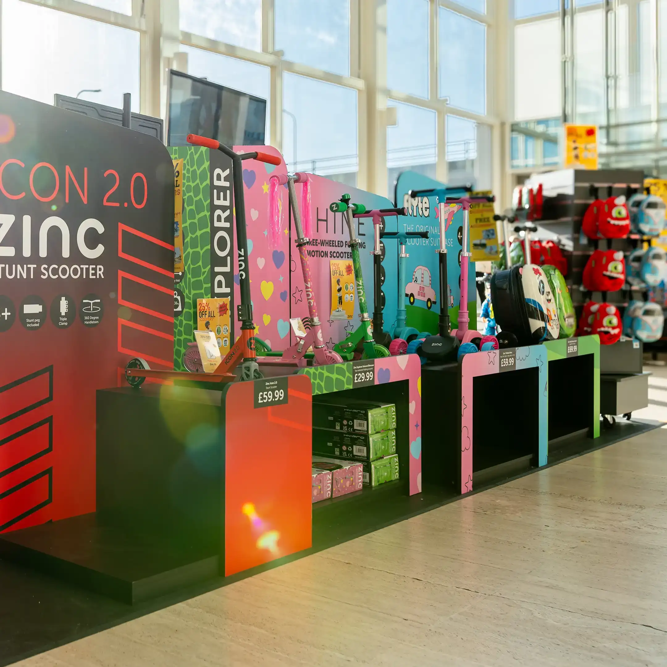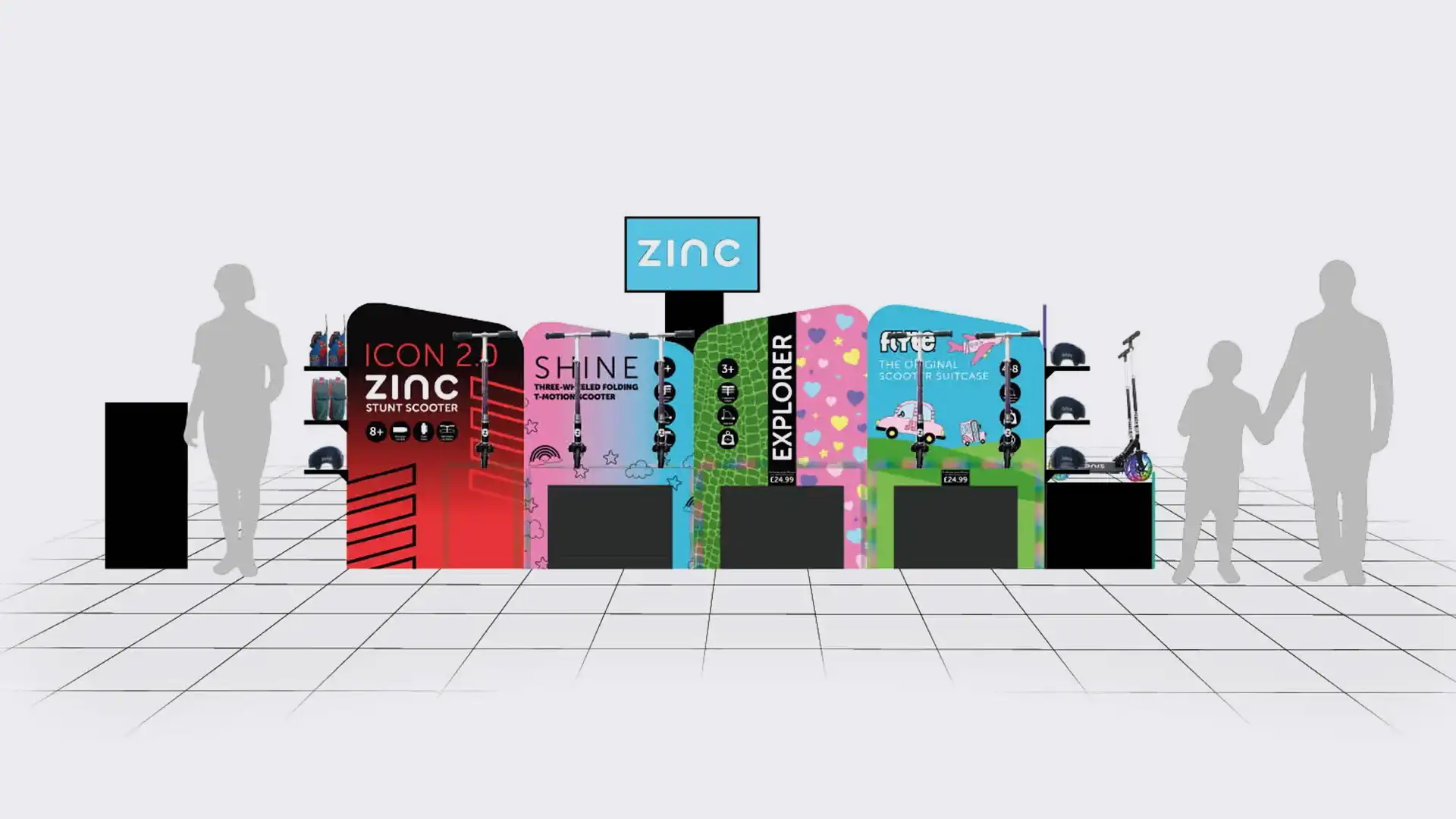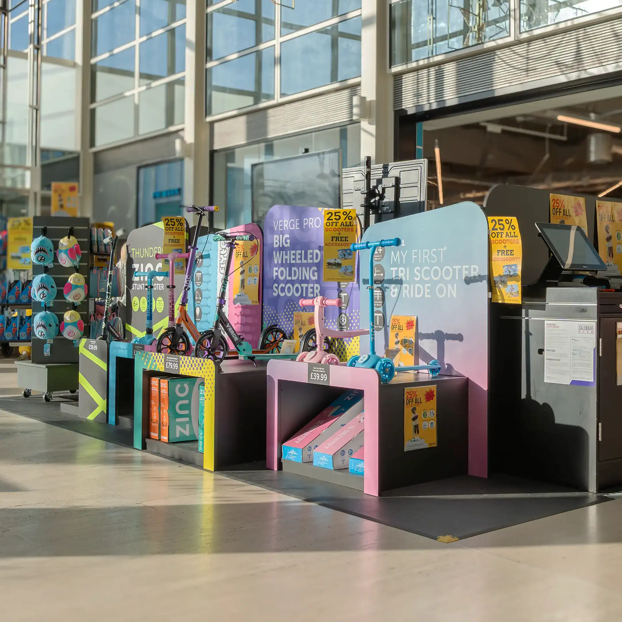Launching a new retail concept for the winter season, Calendar Club approached Bigwave to help design a bespoke stand selling scooters from Zinc, the UK’s number-one scooter brand.