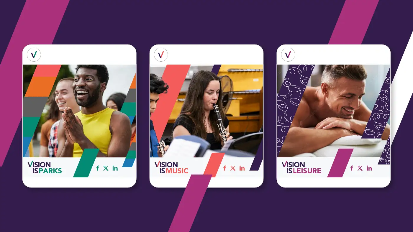 We began with a series of Discovery Workshops, working closely with teams across Vision RCL’s service areas. These sessions helped us understand the breadth of their offer, align stakeholders around purpose, audience and ambition, and uncover the shared principles that connect every service. This insight formed the foundation for a refreshed brand designed to flex confidently across services, platforms and teams.