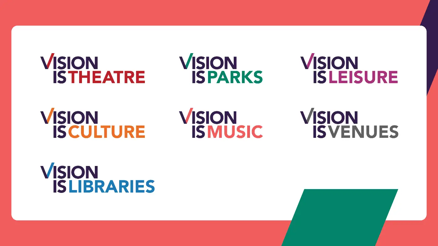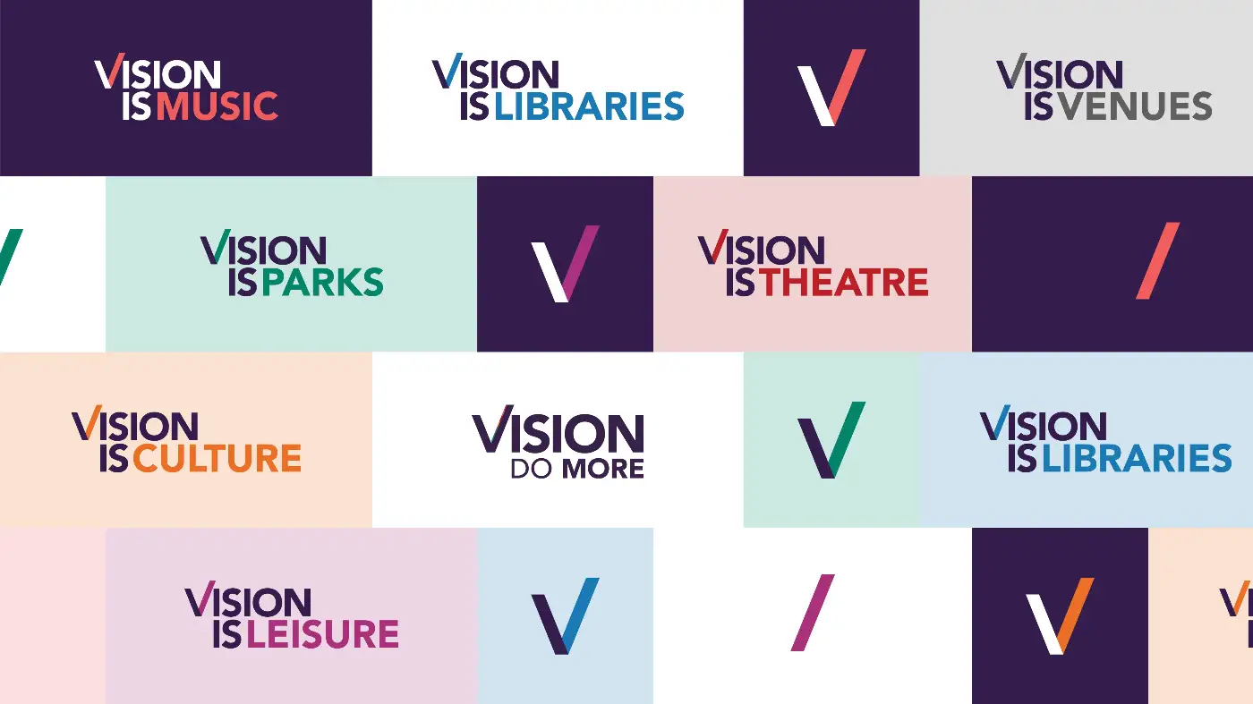 We then streamlined the existing brand architecture into seven distinct sub-brands. Each has its own identity while remaining clearly part of the wider Vision family. All sub-brand logos follow the same design principles as the main Vision RCL mark, incorporating the recognisable V symbol and a designated colour. This created a consistent, highly recognisable system across all services.
